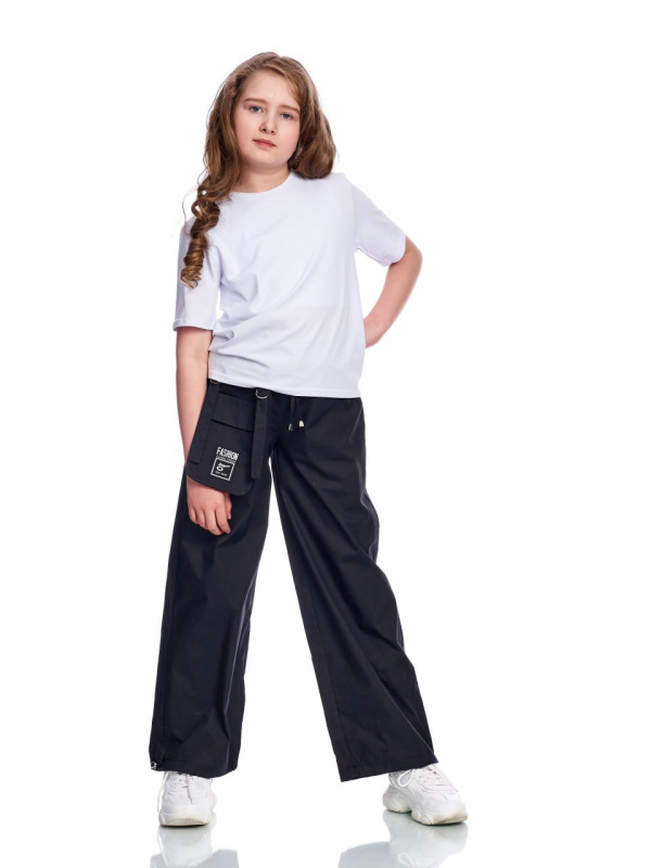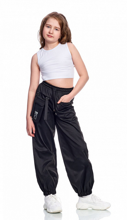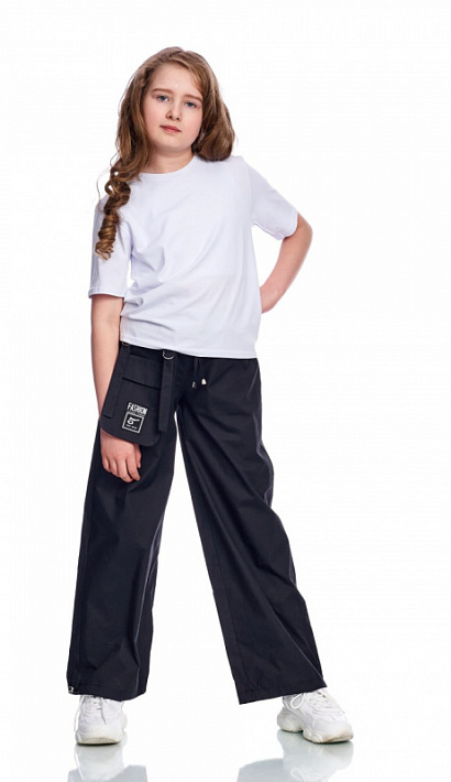 Брюки выполнены из 100% хлопка. В комплекте к брюкам идет съемный карман-сумочка. Пояс на резинк...