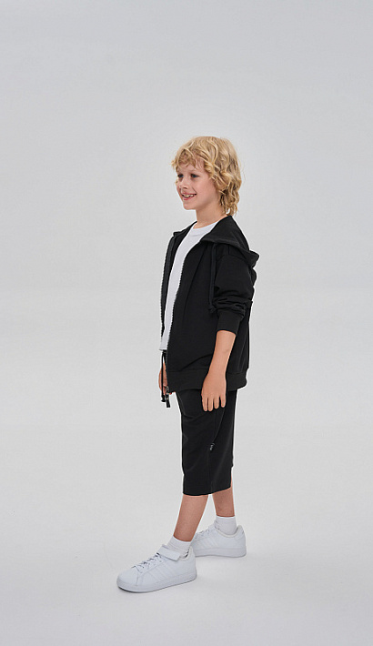 Худи свободного кроя с застежкой на молни из мягкого трикотажа средней плотности (футер с лайкро...