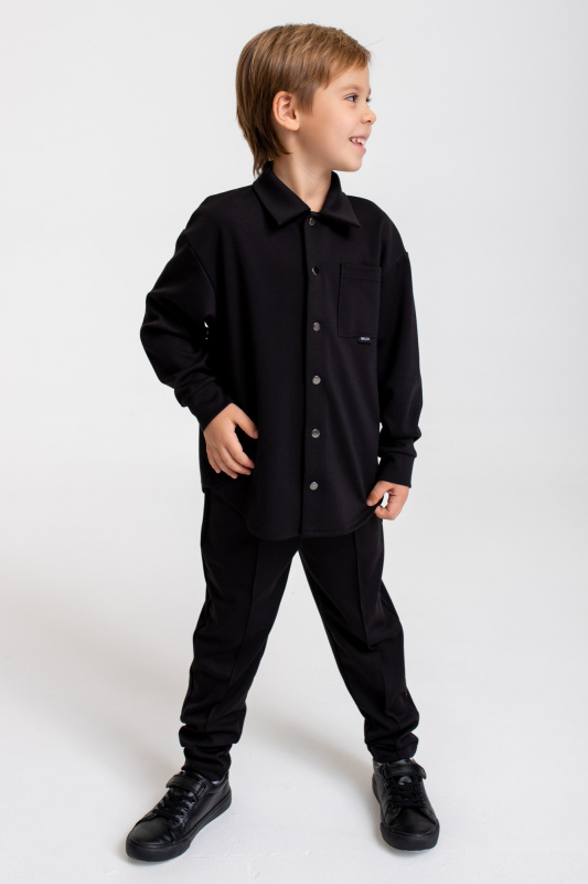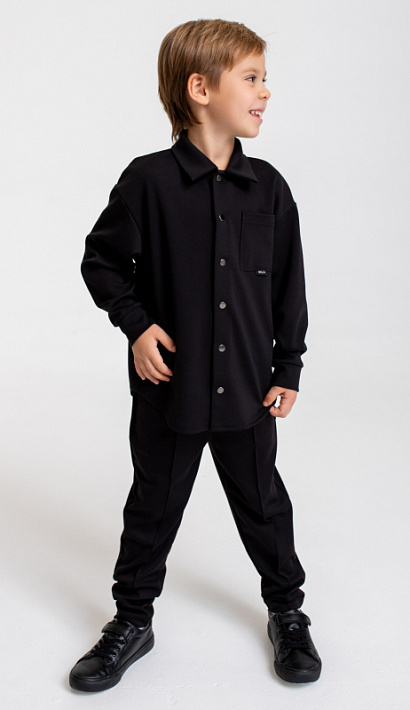 Рубашка свободного кроя с накладным карманом. Спереди застёжка на металлические кнопки. Выполнена из...