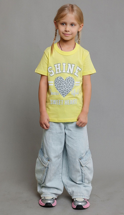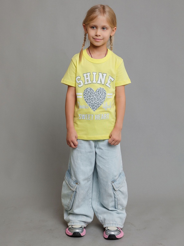 Футболка с коротким рукавом для девочки желтая из натурального хлопка. Футболка детская со стильным принтом в виде сердца и надписей от бренда batik. Повседневная футболка для детей и подростков идеально подходит для похода в садик, школу, для занятий физкультурой и спортом, а также в качестве универсальной домашней или пляжной одежды.