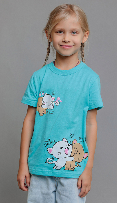 Футболка с коротким рукавом для девочки голубая из натурального хлопка. Футболка детская с ярким принтом от бренда batik. Повседневная футболка для детей и подростков идеально подходит для похода в садик, школу, для занятий физкультурой и спортом, а также в качестве универсальной домашней или пляжной одежды.