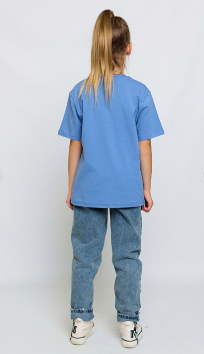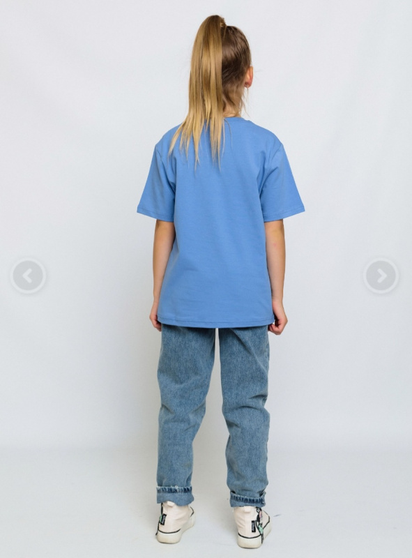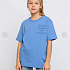 Футболка для детей голубая с коротким рукавом из супрема. Прямая широкая трикотажная футболка изготовлена по всем стандартам безопасности детской одежды, материал не вызывает аллергии, а тело ребенка всегда дышит. Идеально подходит для лета. С одной стороны стильная вышивка в виде надписи.