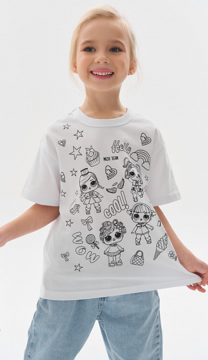 После того, как ребенок раскрасит изображение и внесет свои авторские штрихи, футболку рекомендуем проутюжить и в дальнейшем стирать при температуре 30 градусов.