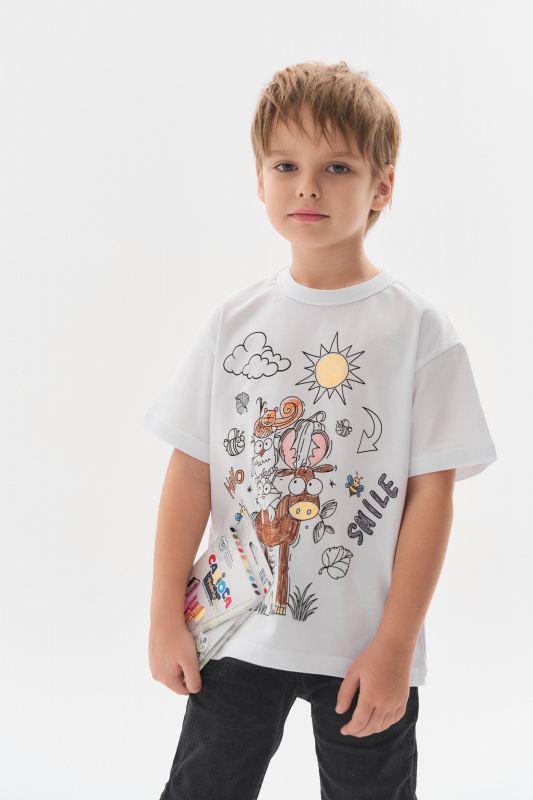После того, как ребенок раскрасит изображение и внесет свои авторские штрихи, футболку рекомендуем проутюжить и в дальнейшем стирать при температуре 30 градусов.