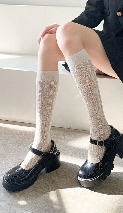 Лёгкие, капроновые гольфы для девочки, декорированные ажурным узором. Модель прекрасно подойдет как для торжественных мероприятий, так и для повседневного образа.