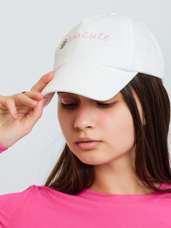 Бейсболка для девочки из хлопка белая с надписью. Кепка выполнена из качественных материалов в универсальном цвете. Отлично защитит от солнца и будет стильно смотреться с любой одеждой.