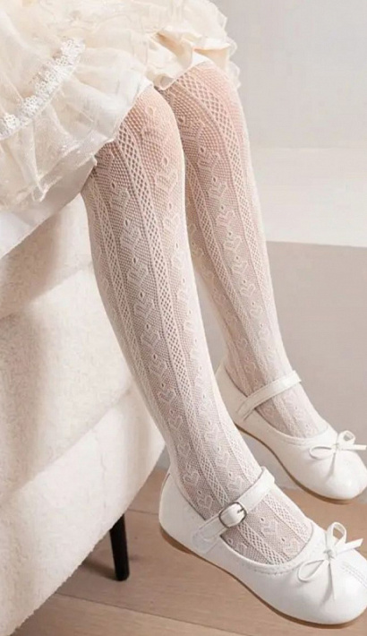 Лёгкие, капроновые колготки для девочки, декорированные ажурным узором. Модель прекрасно подойдет как для торжественных мероприятий, так и для повседневного образа.