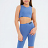 Состоит из топа на широких бретелях, фиксирующегося по низу широкой мягкой резиной, и классических велосипедок, оформленных фирменной нашивкой.
