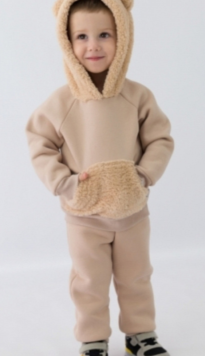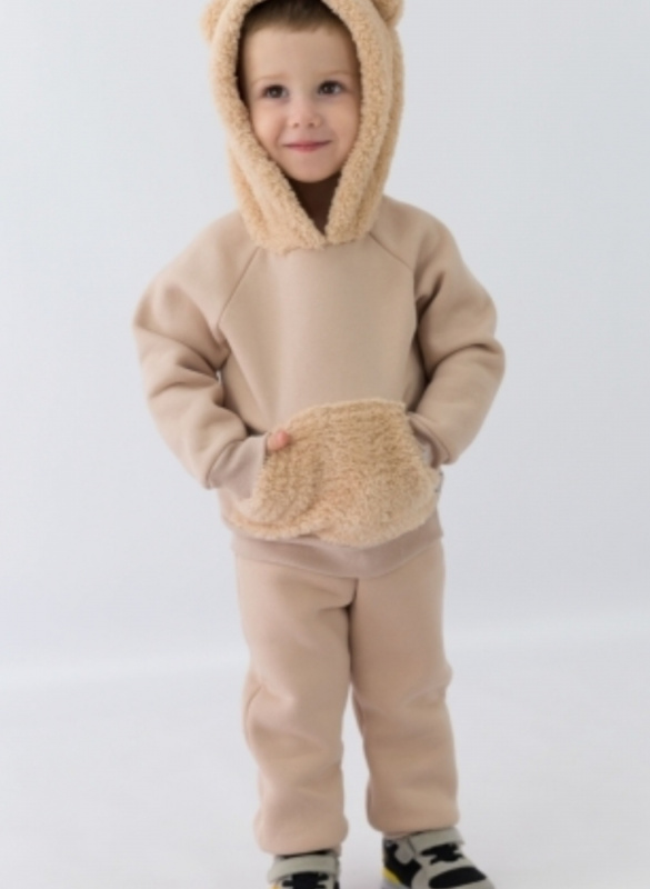 Теплый комплект из футера 3-нитки с начесом (80% хлопок, 20% п/э). Капюшон с ушками и карманом-кенгуру из пушистого велсофта делают этот комплект невероятно уютным!