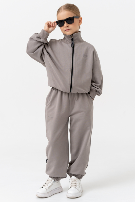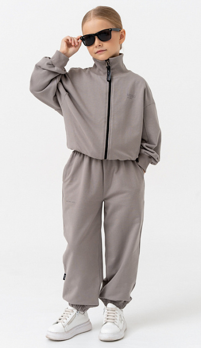 Костюм состоит из свитшота объемного кроя на молнии, с воротником-стойкой.