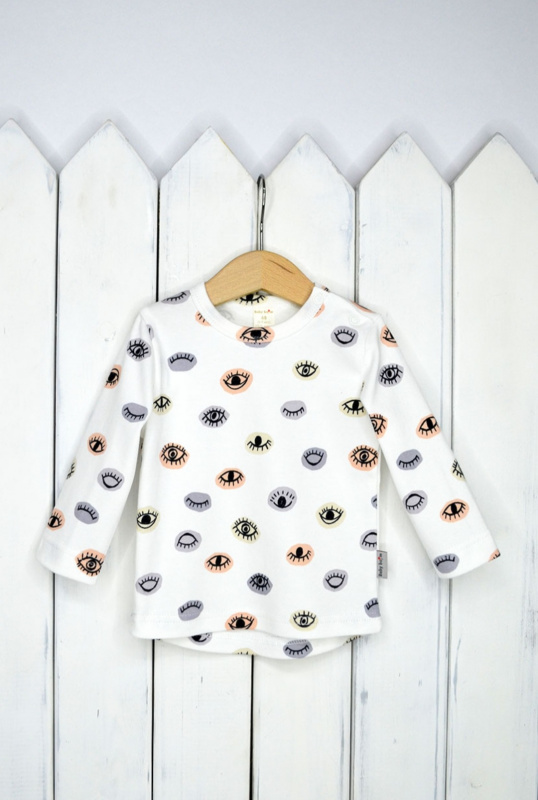 Лонгслив из интерлока, 100% хлопок. Спинка изделия немного удлинена, по плечу застежка на кнопках.