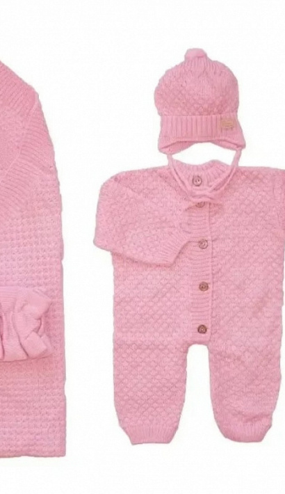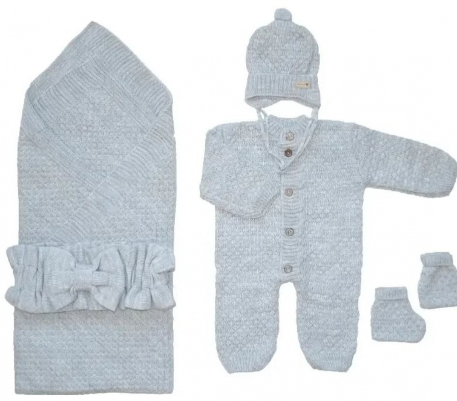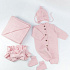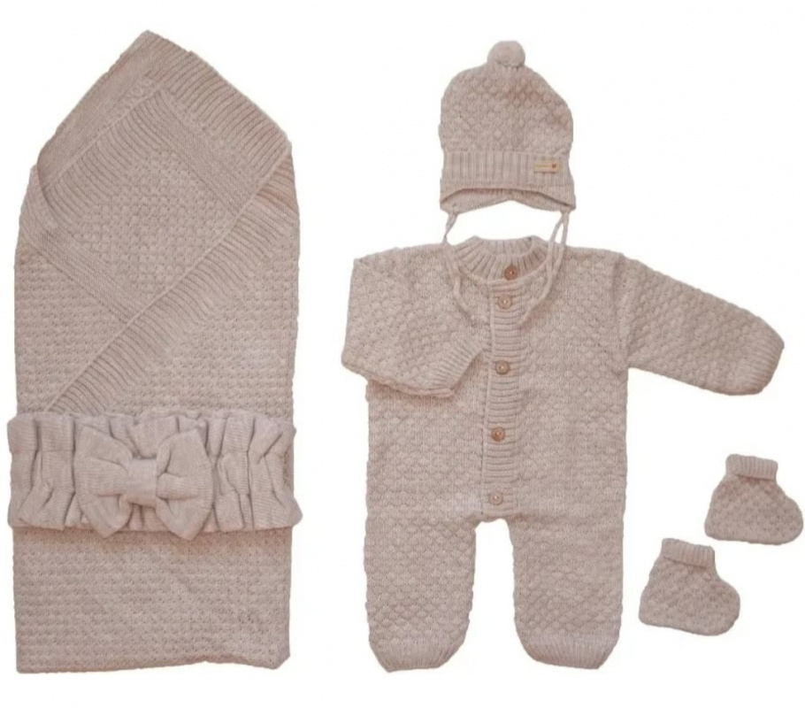 Комплект на выписку: Комбинезон, шапочка, пинетки, плед, бант.