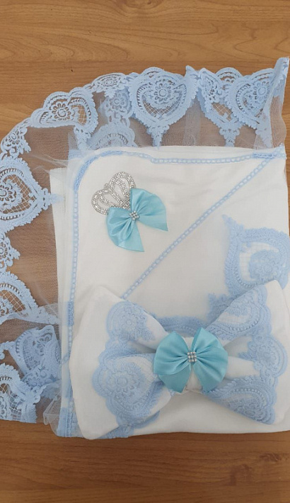 Плед кружевной с бантом голубой