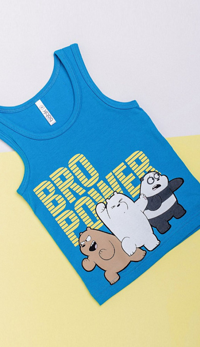 Майка для мальчика синяя с принтом в виде надписей. Детские майки для мальчиков изготовлены из самого экологичного, легкого, приятного к телу трикотажа «супрем пенье», выполненного из высококачественного хлопка, что обеспечивает свободный воздухо- и влагообмен, в них ребенку уютно и комфортно.