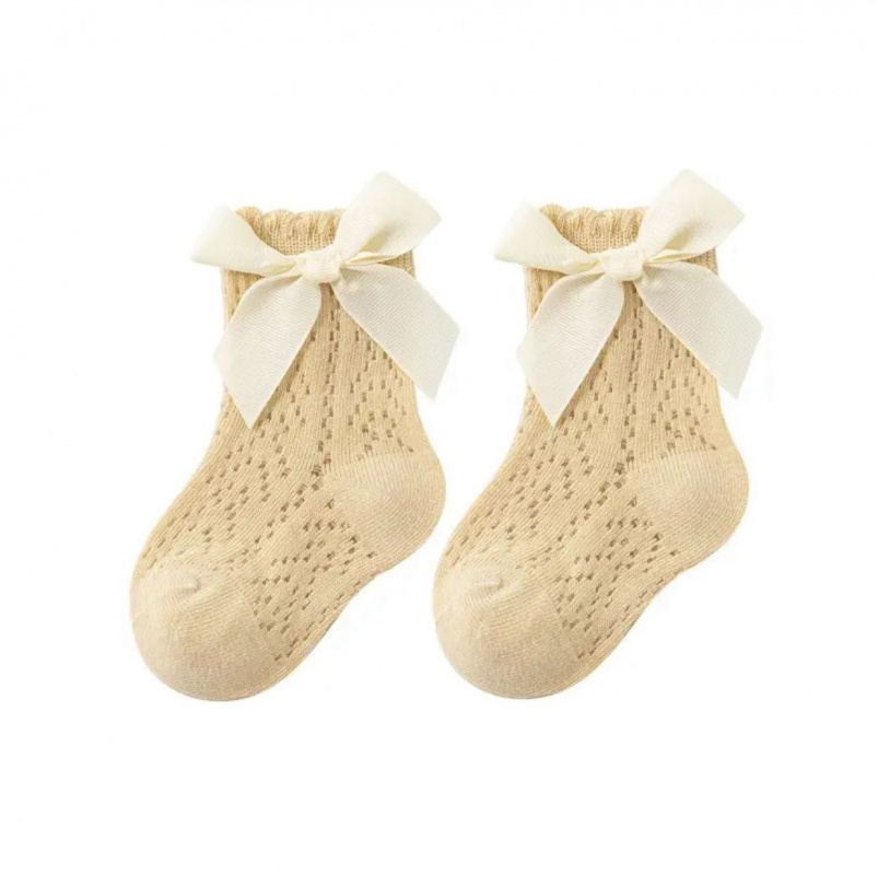 Детские вязаные носки с бантом кремовые