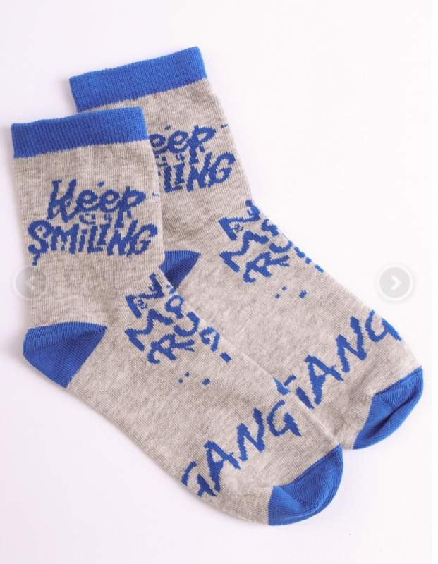 Детские носки серо-голубые с двубортной резинкой, паголенок классический, компьютерный рисунок в виде надписей-граффити. После стирки не теряют цвет и форму. Носочки для мальчиков подойдут для дома и прогулок на свежем воздухе.