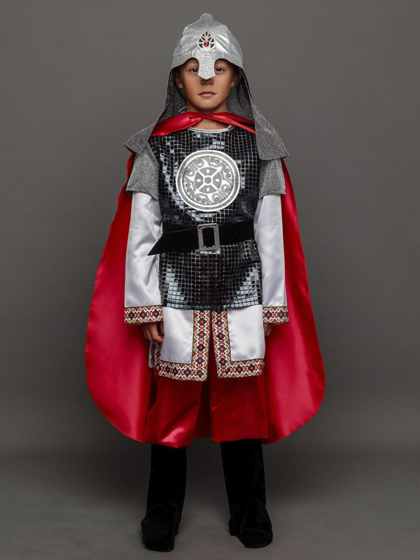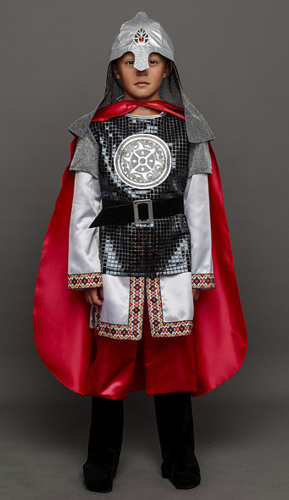 Богатырь – самый что ни на есть русский супергерой, побеждающий Змея Горыныча, Кощея, Соловья-Разбойника и спасающий прекрасную царевну. Мальчику обязательно понравится такой образ, он отлично подходит для новогодних утренников и елок, а также спектаклей. Для самых храбрых и харизматичных мальчиков рекомендуем выбирать образ Богатырь! В комплект костюма входит: кольчуга, рубаха, шлем, брюки, плащ.