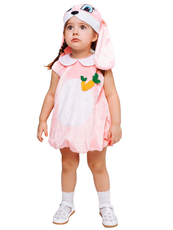 В образе Зайки наши замечательные девочки смогут побывать на утреннике, поучаствовать в постановке интересного номера или сходить в гости на праздник. Нежно-розовый наряд Зайки обязательно понравится девочке, и она захочет надеть его еще раз. Костюм представляет собой короткое платьице и шапочку. Размер рассчитан на девочку 3-5 лет.