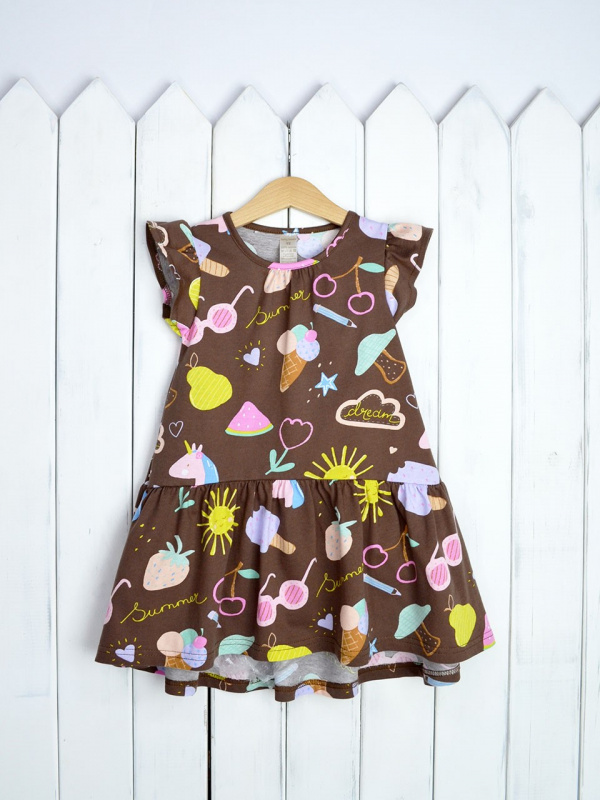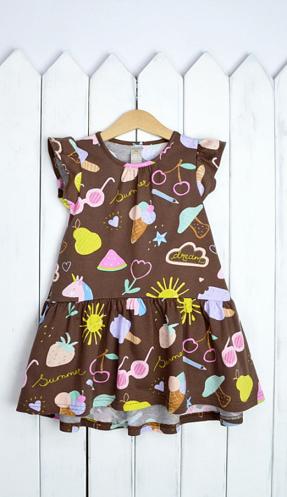 Летнее платье из легкой кулирки, 100% хлопок. Рукава- крылышки, по низу платья широкий волан, спинка немного удлинена.