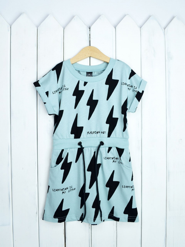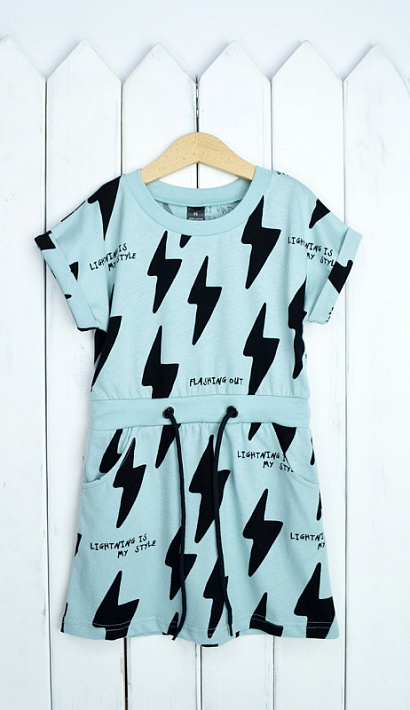 Летнее удобное платье с коротким цельнокроенным рукавчиком с отворотами. Платье отрезное по талии со вставкой из эластичной рибаны, шнурком и боковыми карманами. Выполнено из мягкой кулирки с peach-effect, 100% хлопок.