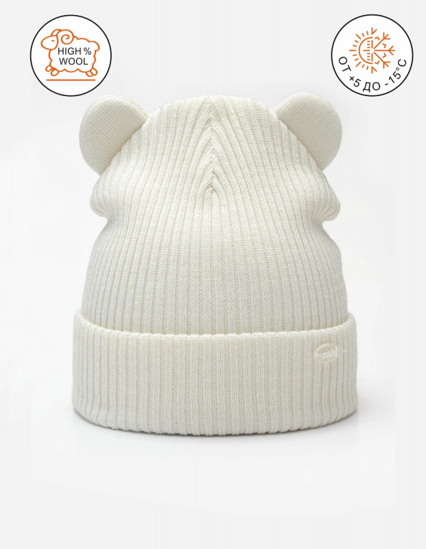 Зимняя детская шапка из полушерстяной пряжи российского производства. Модель – унисекс, подойдет как для девочки, так и для мальчика. Шапочка двойная, без подкладки и утеплителя. Декорирована забавными ушками. За счет отворота создается дополнительная защита. Рекомендованный температурный режим от +5С до -15С (температурный режим зависит от климатических условий региона, степени активности ребенка).