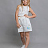 Шорты для девочки трикотажные удлиненные в молочном оттенке из футера. Выполнены из качественного износостойкого хлопка. Ткань не потеряет свой первоначальный вид после множества стирок. Имеют широкий эластичный пояс с шнурком. С одной стороны рисунок в виде цветов.