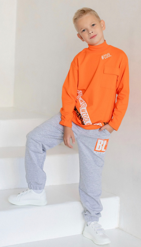 Брюки для мальчика серые с карманами спортивные из футера. Низ на резинке, сбоку надпись. Материал: ...