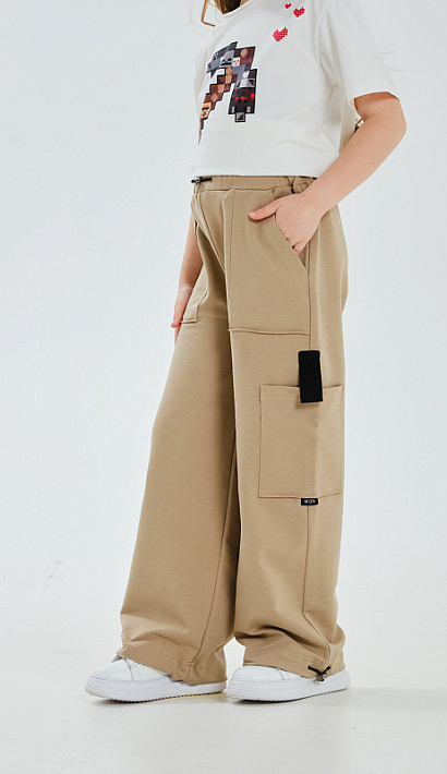 Пояс на мягкой эластичной резине, по низу брюк эластичная регулируемая затяжка.