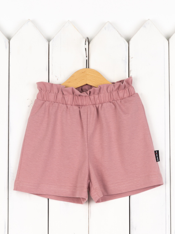 Шорты для девочки с широким поясом на резинке. Выполнены из кулирки (100% хлопок).