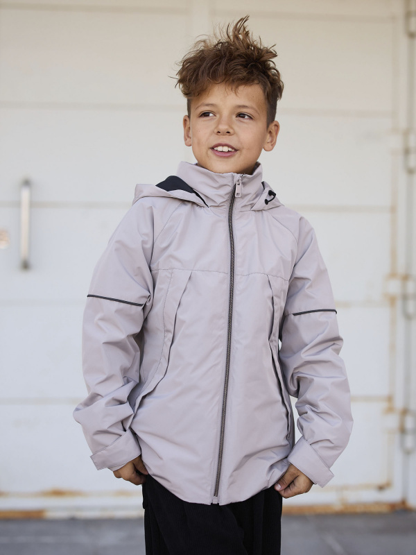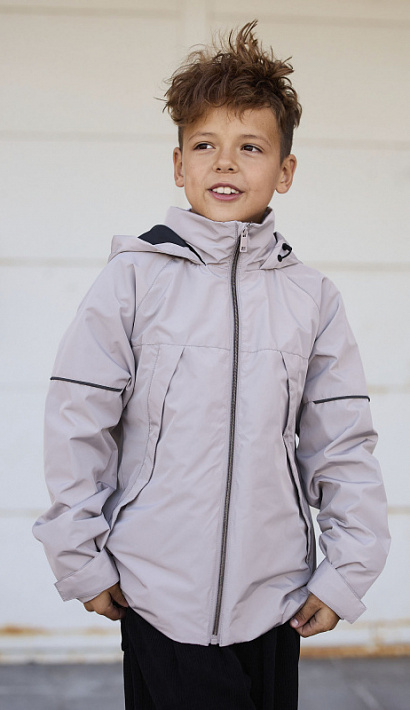 Капюшон имеет кулису по лицевому краю, а низ ветровки можно регулировать по ширине. Модель декорирована тесьмой со светоотражающим принтом, что обеспечивает дополнительную безопасность. В подарок светящийся брелок.