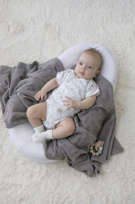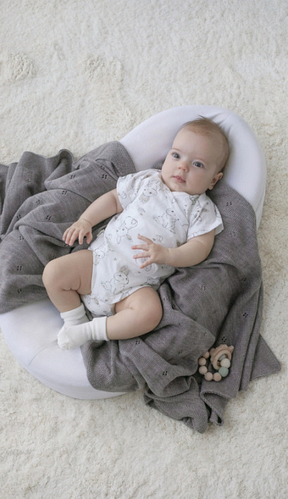 Рукав от линии ворота исключает натирание в проблемной плечевой-подмышечной зоне младенца. Запах на груди исключает давление кнопок при лежании на животике.