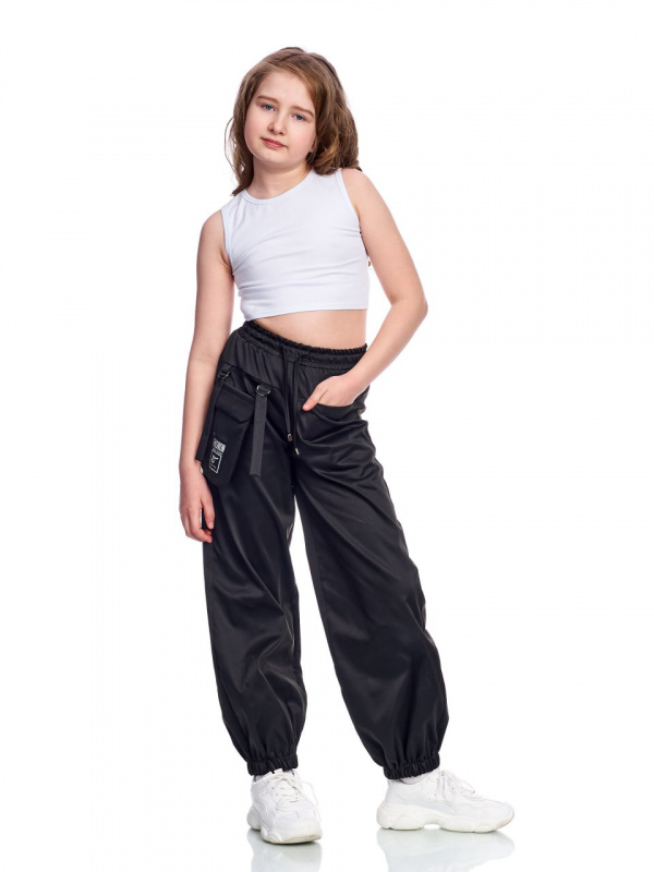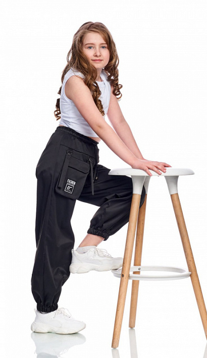 Брюки выполнены из 100% хлопка. В комплекте к брюкам идет съемный карман-сумочка. Пояс на резинк...