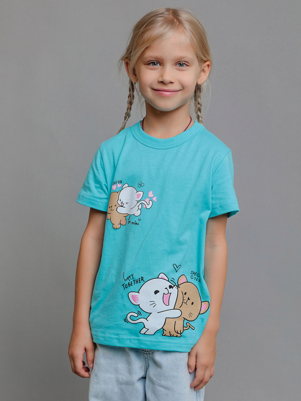 Футболка с коротким рукавом для девочки голубая из натурального хлопка. Футболка детская с ярким принтом от бренда batik. Повседневная футболка для детей и подростков идеально подходит для похода в садик, школу, для занятий физкультурой и спортом, а также в качестве универсальной домашней или пляжной одежды.