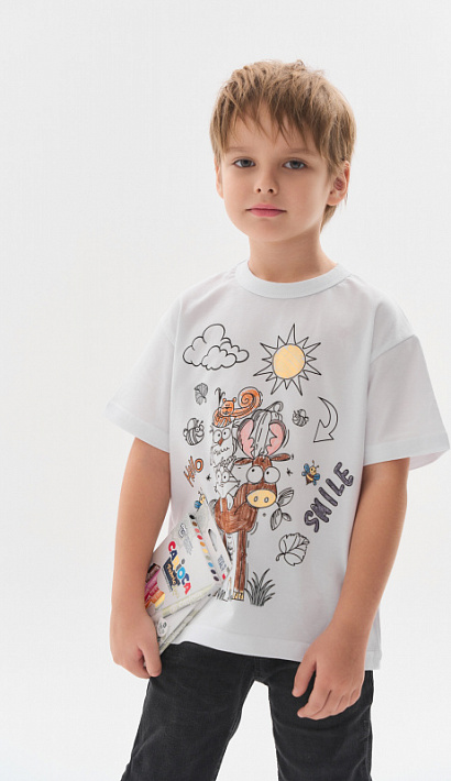 После того, как ребенок раскрасит изображение и внесет свои авторские штрихи, футболку рекомендуем проутюжить и в дальнейшем стирать при температуре 30 градусов.