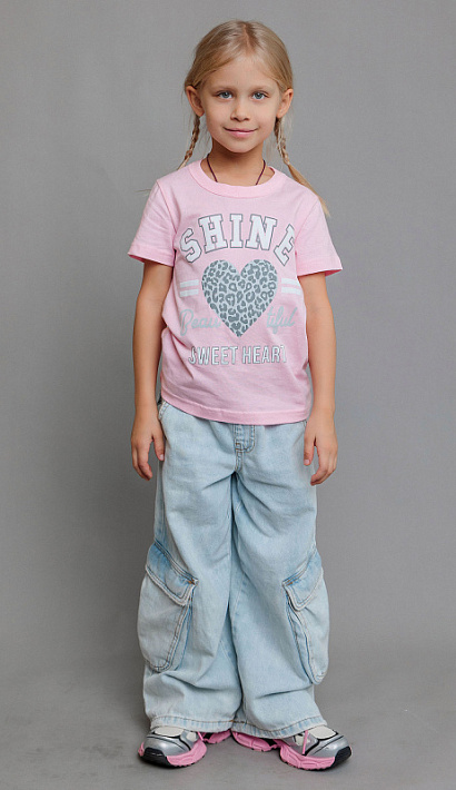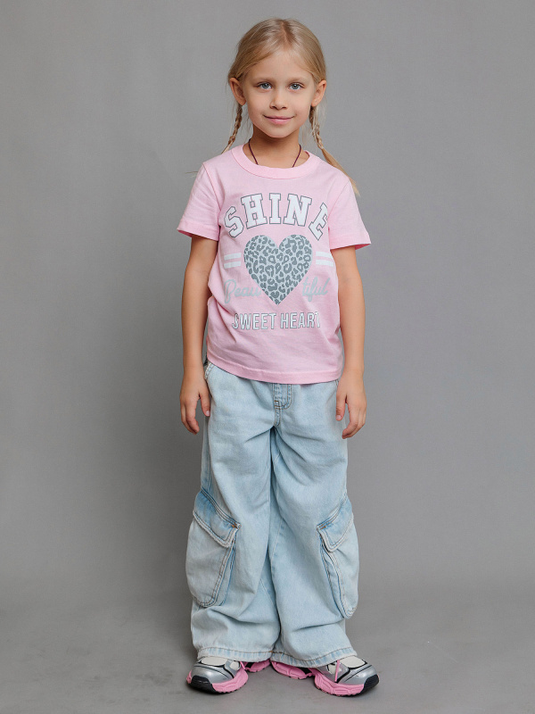 Футболка с коротким рукавом для девочки розовая из натурального хлопка. Футболка детская со стильным принтом в виде сердца и надписей от бренда batik. Повседневная футболка для детей и подростков идеально подходит для похода в садик, школу, для занятий физкультурой и спортом, а также в качестве универсальной домашней или пляжной одежды.