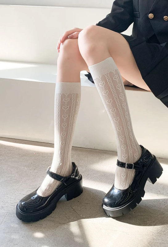 Лёгкие, капроновые гольфы для девочки, декорированные ажурным узором. Модель прекрасно подойдет как для торжественных мероприятий, так и для повседневного образа.