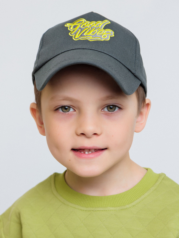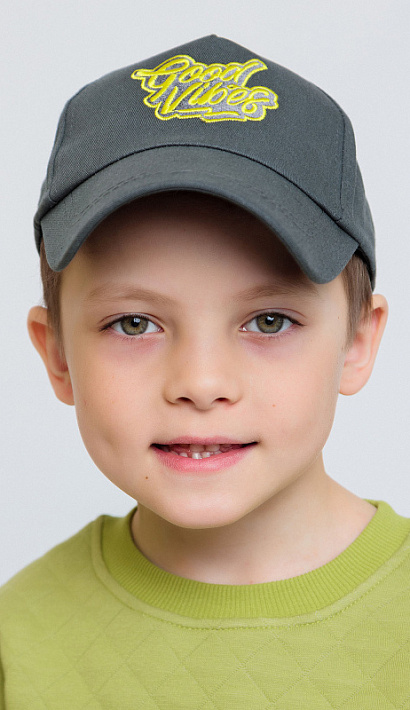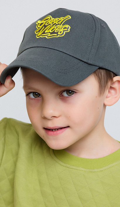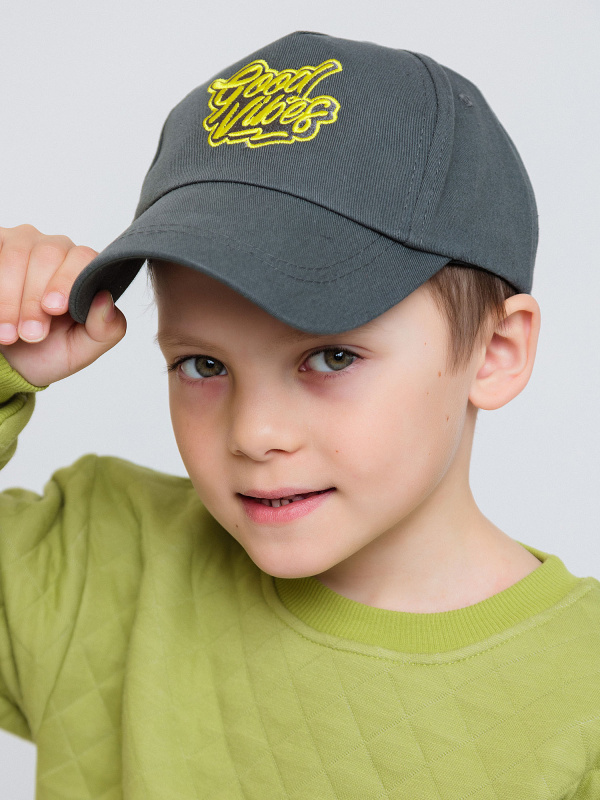 Бейсболка для мальчика серая с объемной вышивкой в виде надписи. Кепка из хлопка убережет голову от палящего солнца и перегрева. Состоит из экологически чистых материалов.
