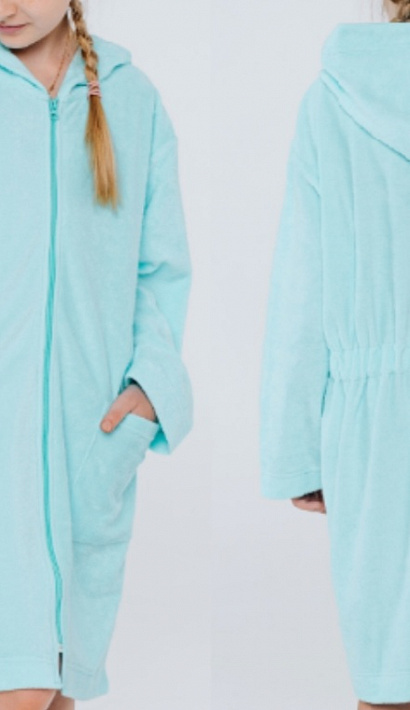 Халат для девочек. Свежая мятная расцветка и вышивка в виде мороженки создают уютный домашний образ.