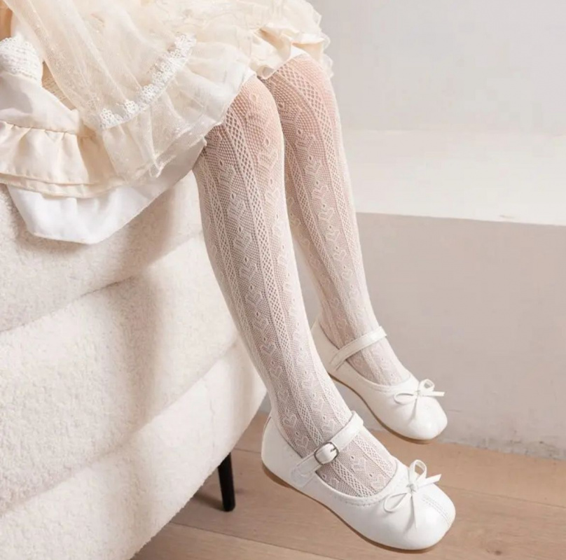 Лёгкие, капроновые колготки для девочки, декорированные ажурным узором. Модель прекрасно подойдет как для торжественных мероприятий, так и для повседневного образа.