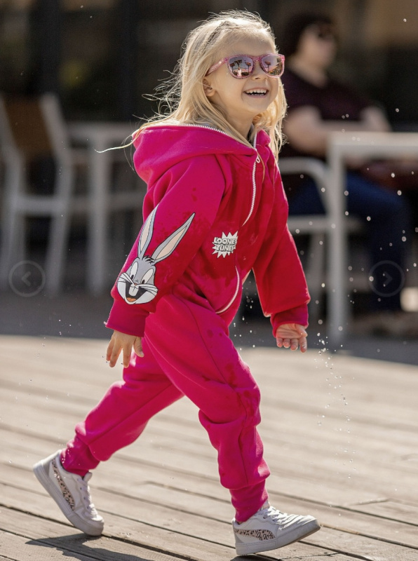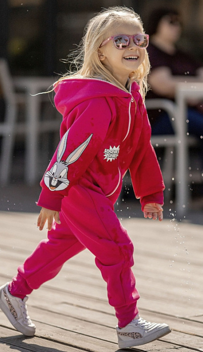 Комбинезон трикотажный из футера для девочки. Розовый комбинезон с лицензионным рисунком Looney Tunes. д