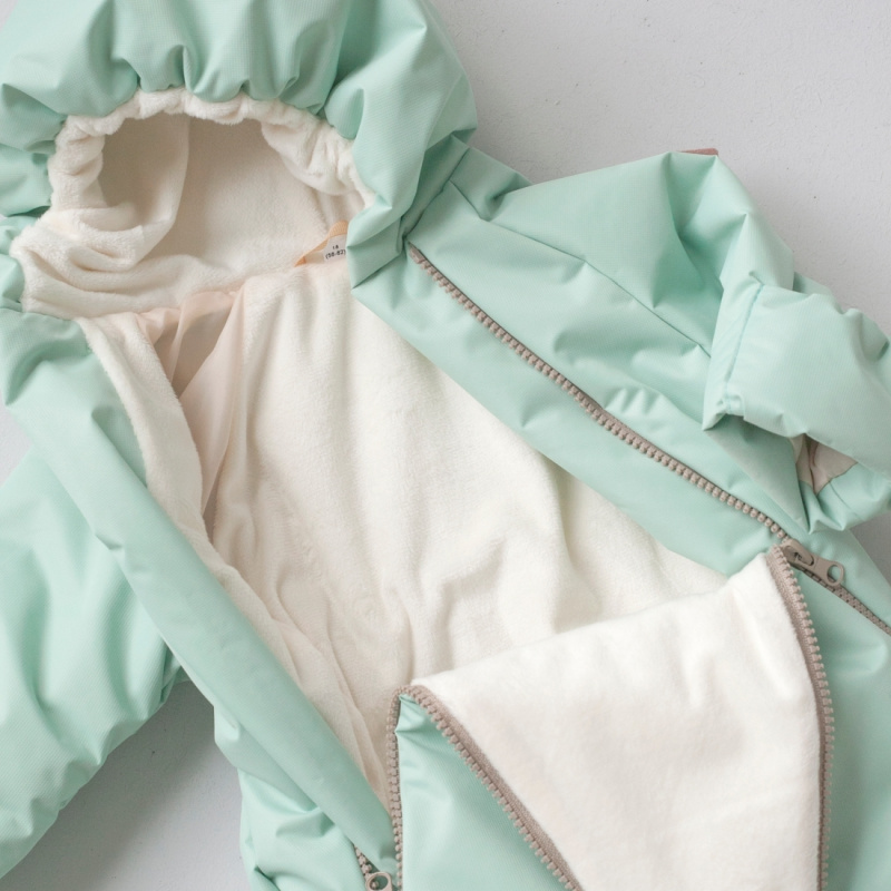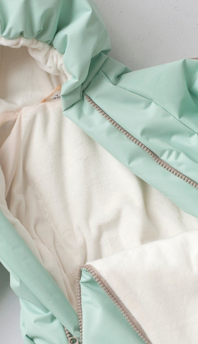 Комбинезон с капюшоном с подкладом из ворсового трикотажа - плюш (п/э 100%) и тафетты (п/э 100%).