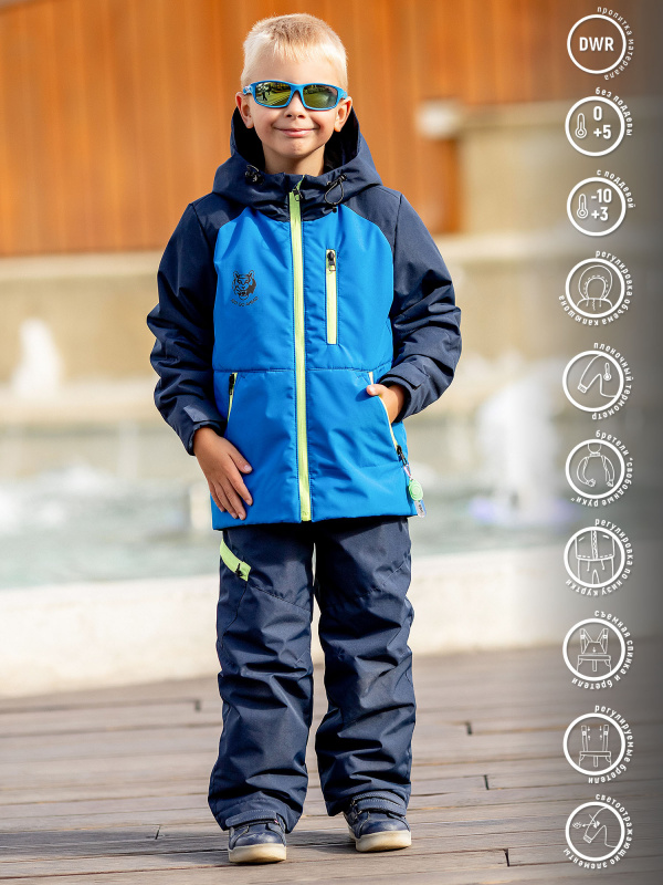 Комплект для мальчика Трой демисезонный утепленный в расцветке хаки. Куртка и полукомбинезон из мембраны на весну и осень. Ткань с водоотталкивающей пропиткой DWR. Мембрана имеет послойную пористо-пленочную структуру, что дает очень высокую степень защиты от влаги, снега и ветра.