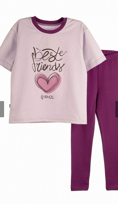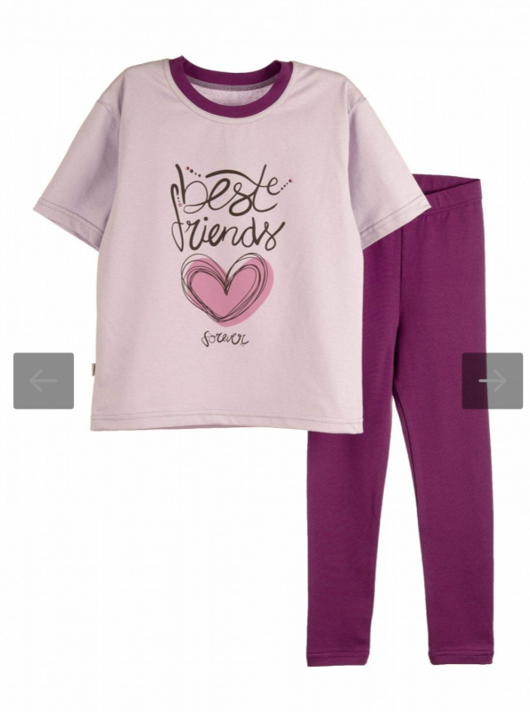Комплект для девочки состоит из футболки и легинс. Футболка для девочки со спущенной линией плеча. Спереди классный принт. Леггинсы длинные, в поясе с эластичной тесьмой. Костюм для девочки изготовлен из кулирки с эластаном (92% хлопок, 8% эластан)-леггинсы и (100% хлопок)-футболка, идеально подходит для активного образа жизни вашей маленькой принцессы. Мягкий, уютный и стильный костюм для девочки легко будет применим для прогулок, сада и активного отдыха.