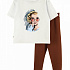 Футболка силуэта оверсайз со спущенной линией плеча. Спереди классный принт. Леггинсы облегающие, длинные. Изготовлен костюм из футболочного полотна с эластаном. Отлично подходит для детского садика и в качестве одежды для дома.