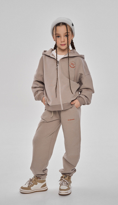 Состоит из худи на молнии и брюк джоггеров.