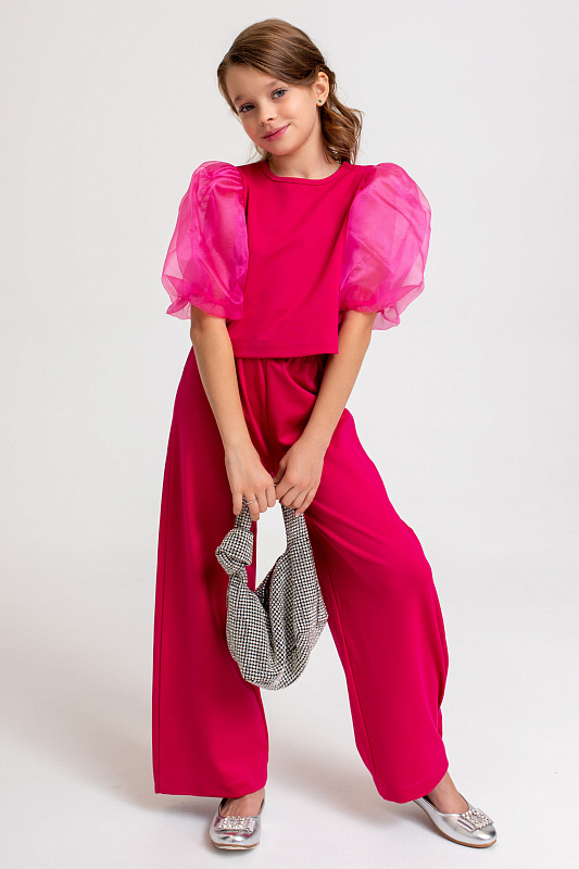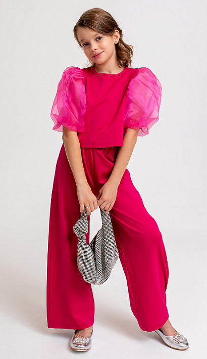 Состоит из топа с воздушными капроновыми рукавами и брюк-палаццо.