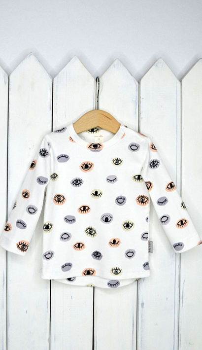 Лонгслив из интерлока, 100% хлопок. Спинка изделия немного удлинена, по плечу застежка на кнопках.