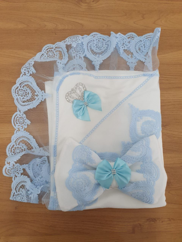 Плед кружевной с бантом голубой