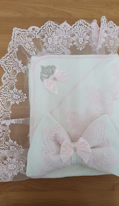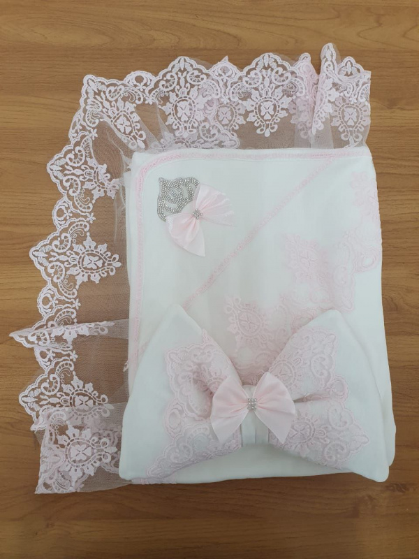 Плед кружевной с бантом розовый