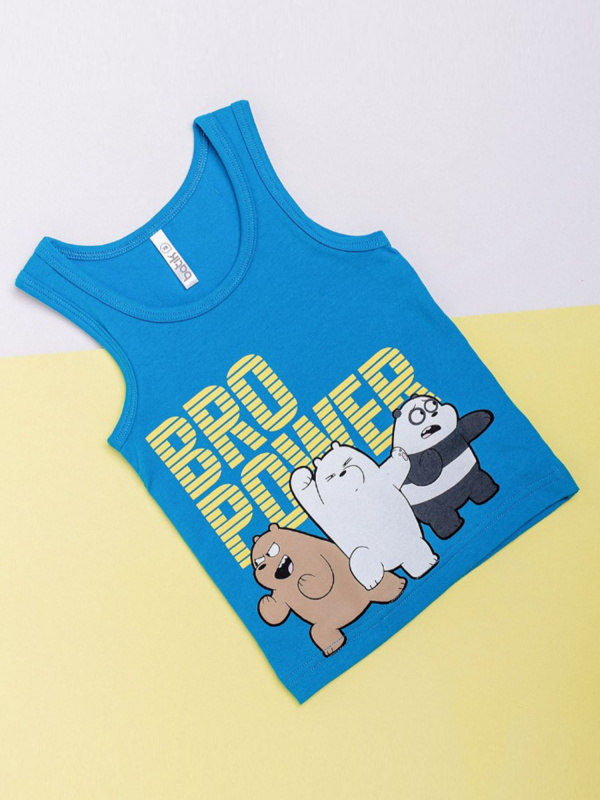 Майка для мальчика синяя с принтом в виде надписей. Детские майки для мальчиков изготовлены из самого экологичного, легкого, приятного к телу трикотажа «супрем пенье», выполненного из высококачественного хлопка, что обеспечивает свободный воздухо- и влагообмен, в них ребенку уютно и комфортно.